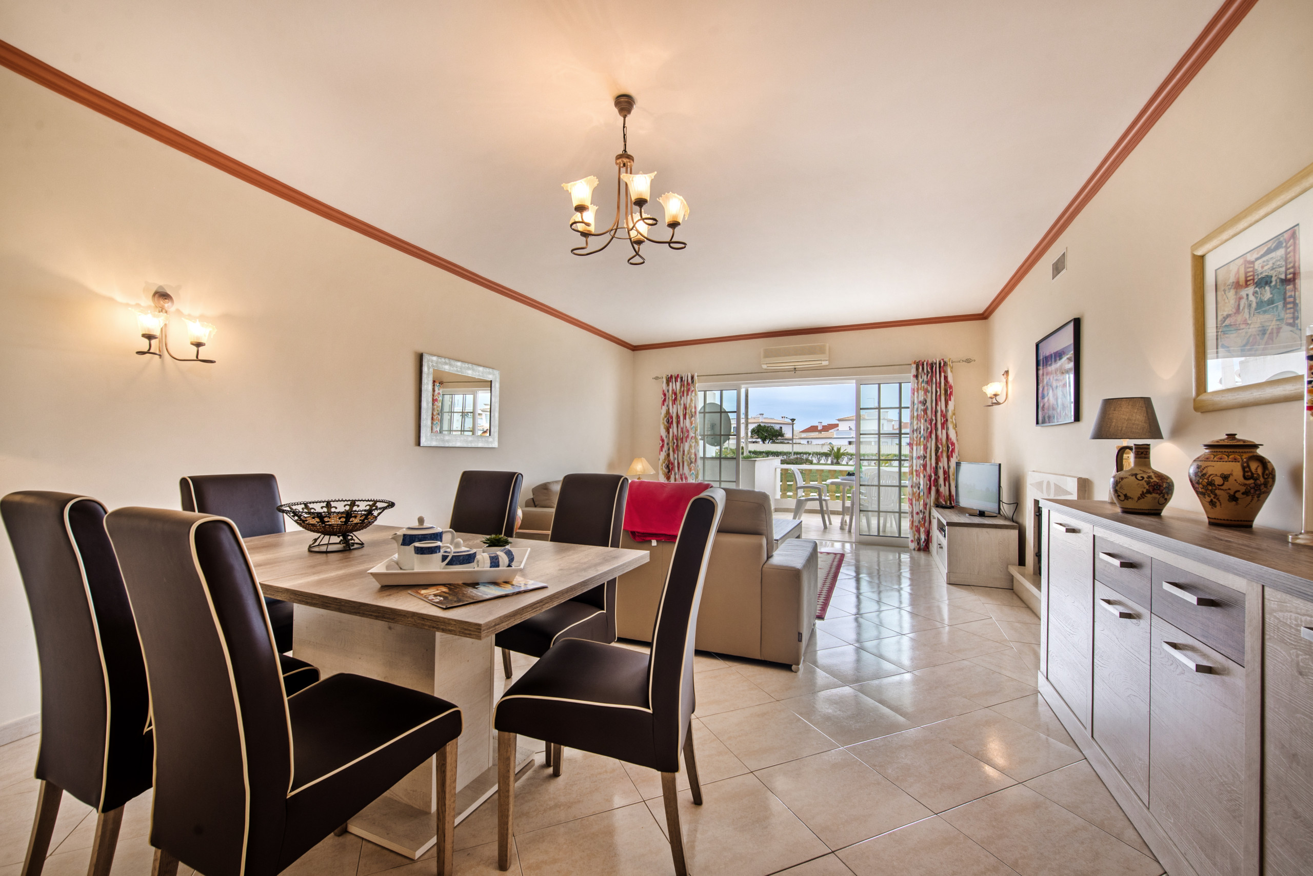 Spacious, comfortable, very well equipped and appointed two bed apartment located on the quiet O Monte complex with large swimming pool, tennis court and well maintained gardens. Good open air parking outside apartment. Excellent location for beautifplus